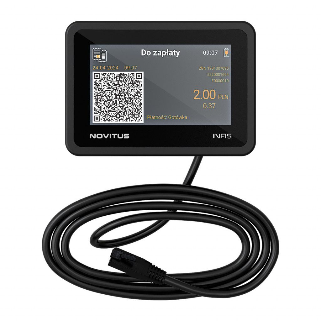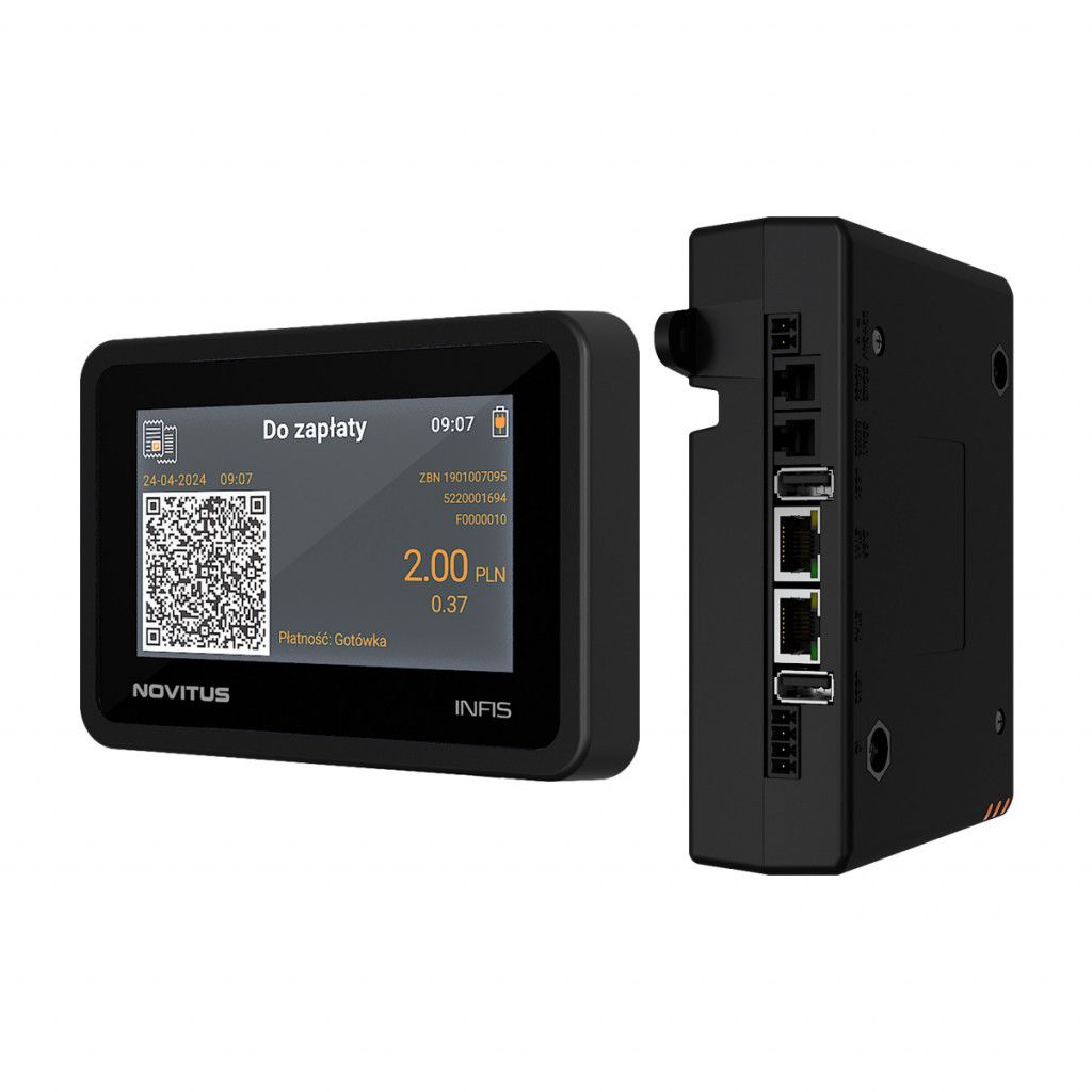 Drukarka fiskalna NOVITUS INFIS jest urządzeniem fiskalnym specjalizowanym, przeznaczonym do montażu w urządzeniach automatycznej sprzedaży towarów i usług dowolnej branży, nie posiada mechanizmu drukującego, gdyż przekazanie paragonu klientowi następuje poprzez wyświetlenie na wyświetlaczu klienta przez 30 sekund zawartości paragonu zgodnej z przepisami dla tego typu urządzeń fiskalnych.